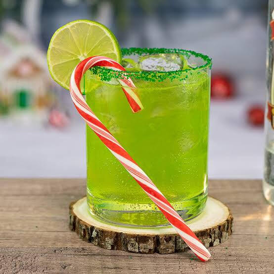 A drink to get even the most sour of folk into the festive spirit. Crushed mint candies line the rim of the glass to give it a vibrant tree like colour. An ounce of Midori is introduced to the bottom of the glass which is followed by a refreshing Lime soda. A Candy cane and lime garnish is sure to turn Grinches into Jolly Spirits.┊Drink Creation by Bartender: Mrs Cora Claus